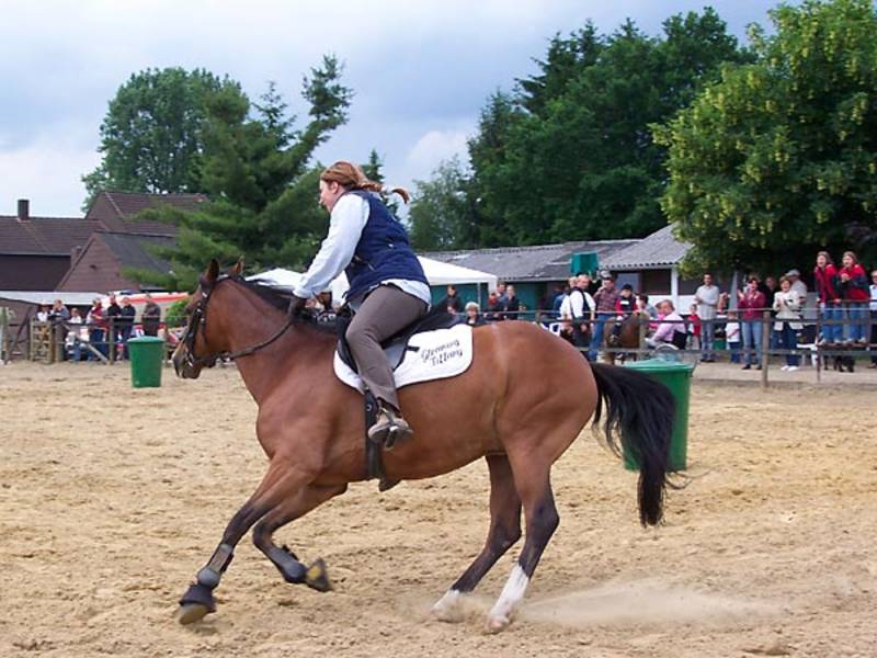 Tiffy habe ich von A wie Anhalten bis Z wie zwei Reiter selbst ausgebildet Stutenleistungsgeprüft Dressurausbildung und Springausbildung Klasse A Horsemanship Schrecktraining klassische Longen- und Doppellongenarbeit Arbeit als Hand- und Führpferd November 2001 erster Therapieeinsatz |